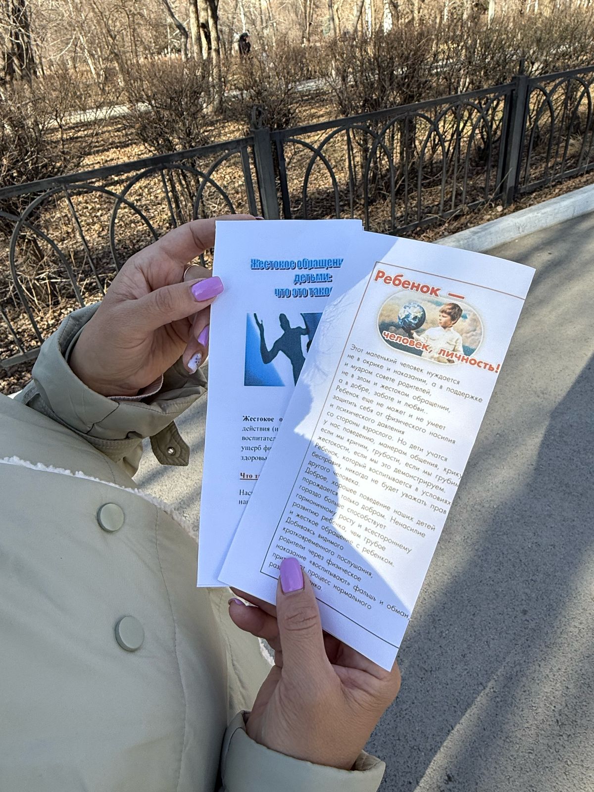 В ходе мероприятия были розданы буклеты с информацией, как распознать тревожное состояние ребенка и куда можно обращаться в случае если стало известно о жестоком обращении с детьми.