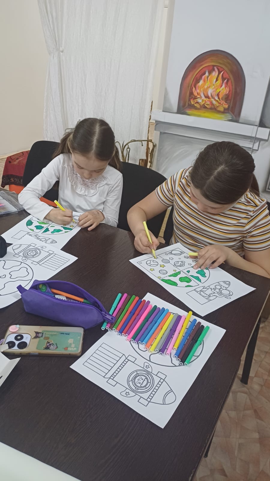 Ребята с вдохновением приняли участие в мастер-классе «Космическая ракета». Они выполнили поделки из цветной бумаги, раскраски, использовали гуашь, фломастеры и ножницы. Каждый ребёнок самостоятельно создал свою уникальную ракету для полёта в космос.
