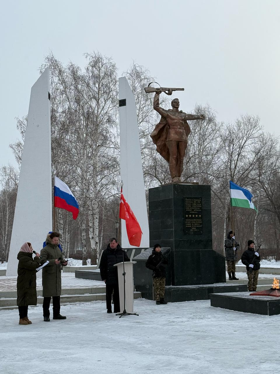 Сегодня, 21 февраля, в преддверии празднования Дня защитника Отечества, состоялась церемония возложения цветов к мемориалу «Вечный огонь». Участники митинга почтили память земляков, павших в годы Великой Отечественной войны, всех воинов, защищавших нашу Родину во время различных войн и сражений минутой молчания.
