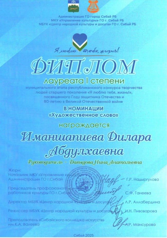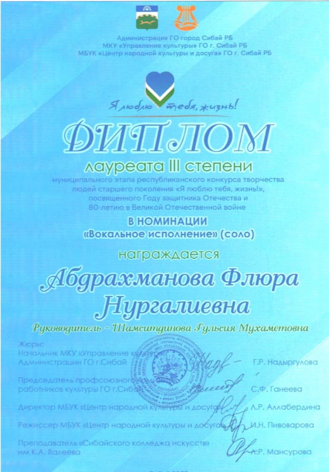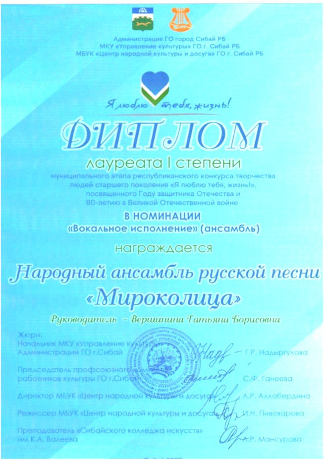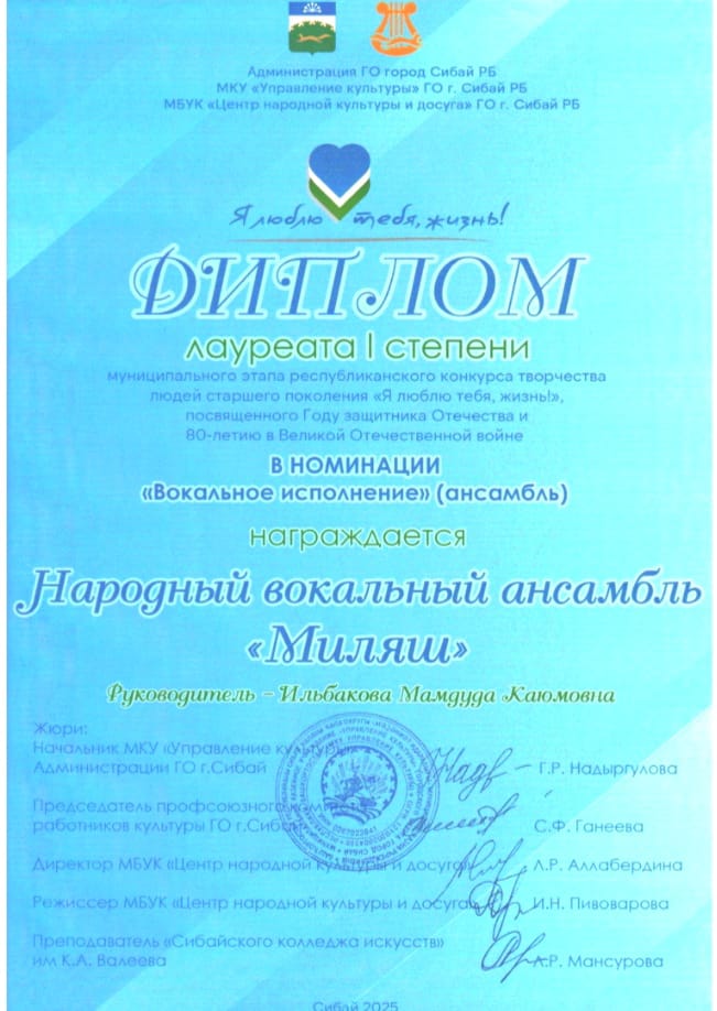 В номинации «Вокальное исполнение» лауреатами I степени стали Народный хор ветеранов (руководитель Давыдова Н. А.), Народный вокальный ансамбль «Миляш»(руководитель Ильбакова М.К.), Народный ансамбль русской песни «Мироколица» (руководитель Вершинина Т.Б.), в номинации «Фольклорное творчество» Дипломом лауреата I степени награждена Народный фольклорный ансамбль «Янгузяй» (руководитель Шамситдинова Г.М.). В номинации «Художественное слово» Дипломом лауреата I степени награждена Иманшапиева Дилара Абдулхаевна (руководитель Давыдова Н.А.), в номинации «Вокальное исполнение» лауреатом III степени стала Абдрахманова Флюра Нургалиевна.