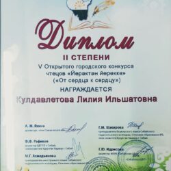 В Сибае прошел V Открытый городской конкурс чтецов «Йөрәктән йөрәккә» («От сердца к сердцу»), организаторам которого являлись Сибайская централизованная библиотечная система и Управление культуры Администрации городского округа город Сибай Республики Башкортостан. Наш сотрудник, методист и несравненная ведущая в городских мероприятиях Лилия Кулдавлетова заняла II место и награждена дипломом. Поздравляем и желаем множество творческих идей, вдохновения, неиссякаемого оптимизма и счастливого блеска в глазах! Пускай твоя жизнь дарит тебе море удовольствия!