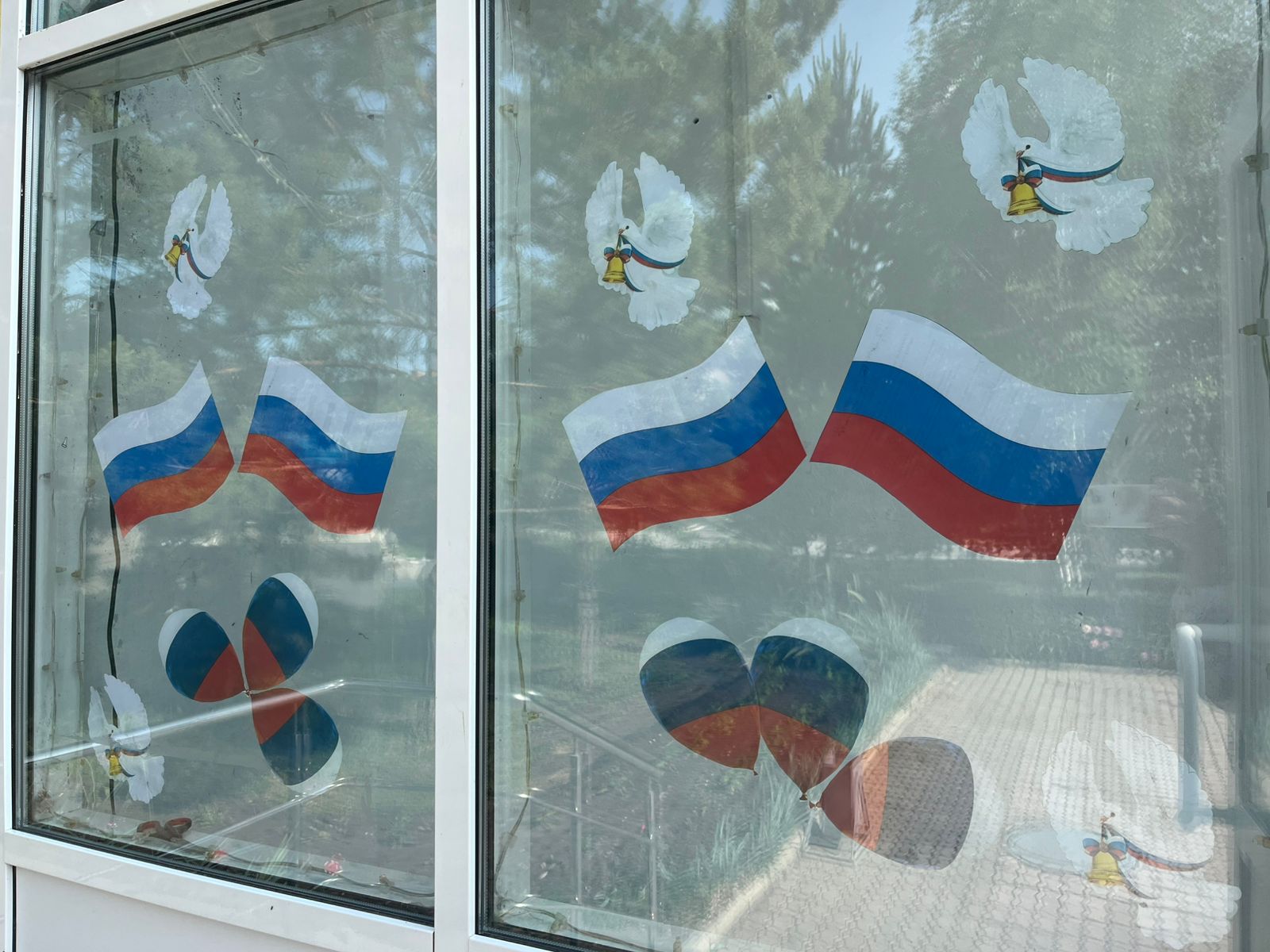 Красиво и празднично украсили окна, используя цвета и символы, которые ассоциируются с нашей Родиной — Россией. Эта Акция является проявлением гражданской позиции, патриотизма, любви к Родине.